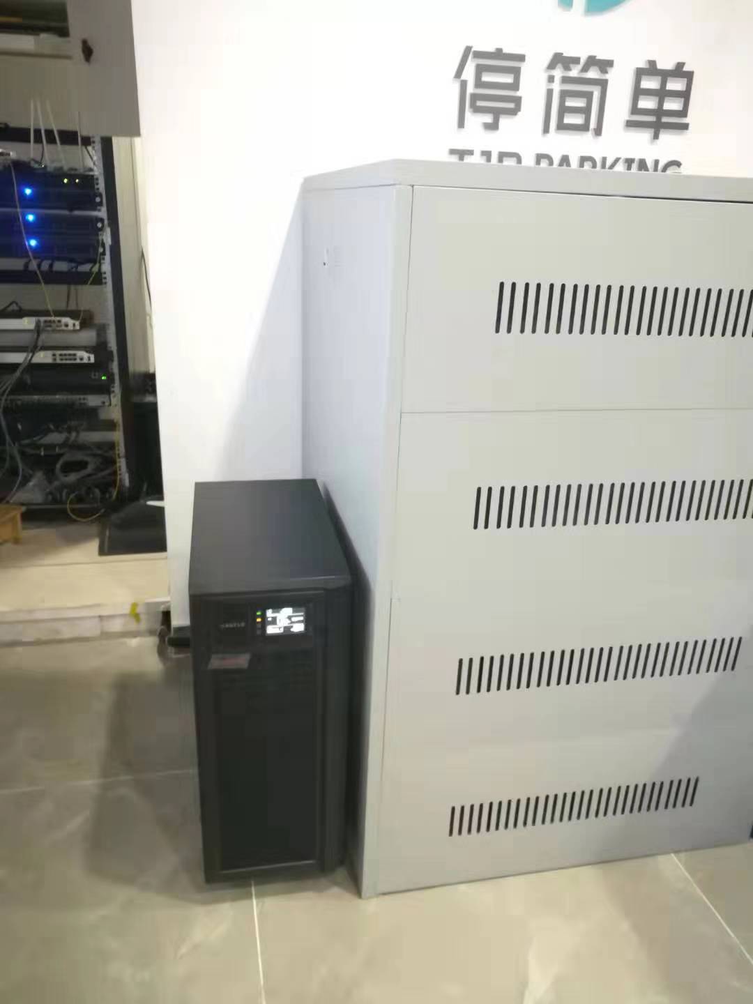 我公司為北京停簡單公司機(jī)房配備了深圳山特UPS電源3C15KS及德國京安特蓄電池12V100AH32只,主要應(yīng)用于電力系統(tǒng)癱瘓后,保證高壓配電切換時照明回路正常照明。