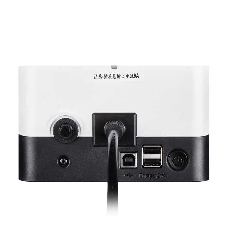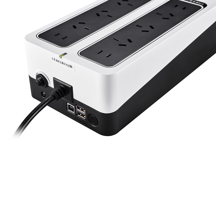 配置市電及不間斷電源保護兩組輸出插座,每組包含兩位雙孔及三位三孔國標(biāo)插座。兩組插座總輸出功率高于標(biāo)稱UPS功率,可達(dá)2000VA。滿足家用環(huán)境等眾多用電設(shè)備的需求。